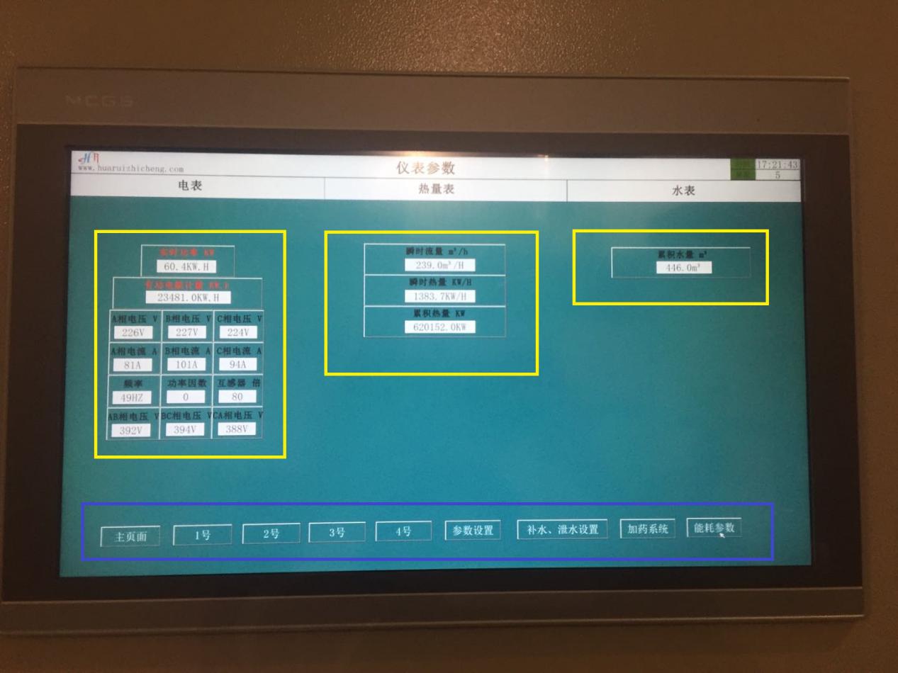 Ø 相电压、线电压、电流 Ø 实时功率、总耗电电能 Ø 电网频率、功率因数 2.6.2. 热量参数 系统侧瞬时流量、瞬时热量、累积热量 2.6.3. 水量参数 系统总耗水量